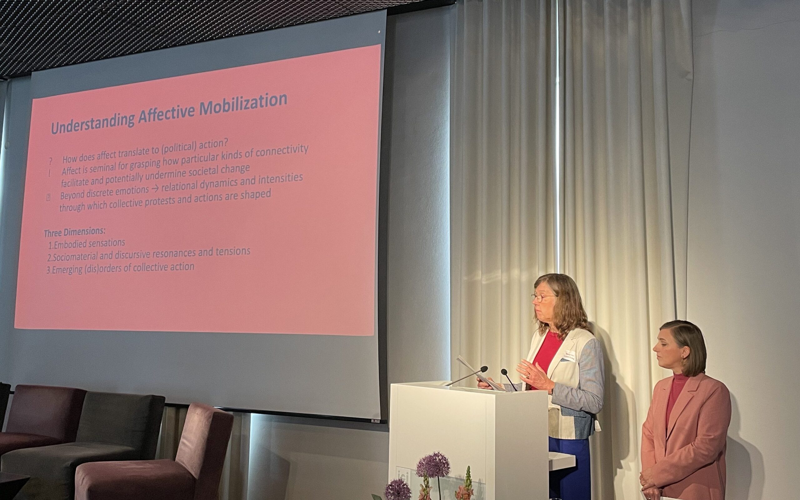 Clare Hemmings, Professor of Feminist Theory at the London School of Economics, opened the conference with her keynote “From ‘Affective Dissonance’ to ‘Affective Solidarity’: The Politics of Affect and the Rise of the Far Right.” Building on her long-standing work on feminist and queer theories and histories, her lecture inquired how affect theory might help us navigate the present rise of authoritarianism and the challenge of creating solidarities across difference. A few months later, Hemmings revisits the tensions that emerged around the question of Palestine, a topic that charged the conference with both emotional and political intensity.