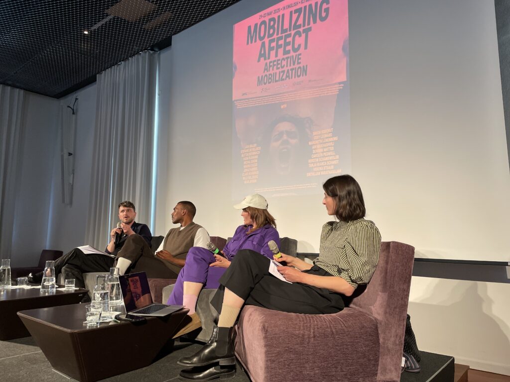 These reflections come from Margreth Lünenborg, Kerstin Schankweiler, and Verena Straub, who conceived and curated the conference. Lünenborg, Professor of Media and Communication Studies at Freie Universität Berlin, is a principal investigator at the CRC, where she examines how journalism and digital media shape affective publics and feminist counterpublics. Schankweiler, Professor of Visual Studies in the Global Context at TU Dresden, leads the project “Image Protests on Social Media,” investigating digital image cultures of activism and affective witnessing. Straub, art and image historian at TU Dresden and co-founder of the Affect and Colonialism Web Lab, explores memes and other popular visual practices as forms of political agitation. Together, they designed the conference as an interdisciplinary encounter between academia, art, and activism, building on their shared research into the affective dynamics of visual and digital protest.