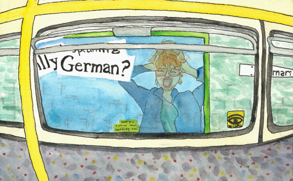 The advertisement glances at anyone waiting on the platform at Samariterstraße. I stood there on my first day, in what at the time was such a foreign country, glancing back at the ad. I stood puzzled by its whispered provocation: “Tired of speaking silly German?” I stood struck by its oddity; how can language make someone feel silly?